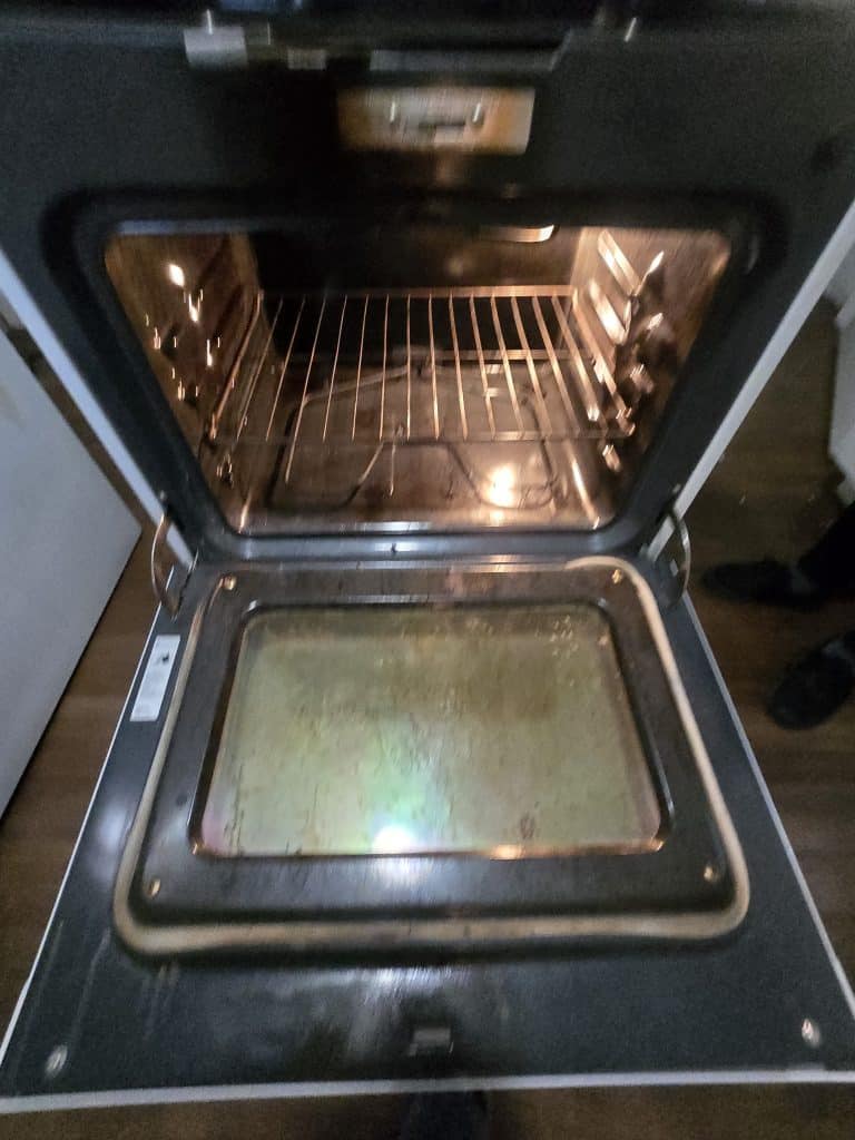 There are many ways to clean an oven. We’ve got it done to a good system. Please follow We do not use oven cleaner. No exceptions. NEVER USE PUMIC STONE DRY. ALWAYS USE WET (WITH CUP OF WATER. DIP IN WATER Supplies: All Pro Cleaner, SOS Pads, Pumice Stone, Cup with water, rags, paper…